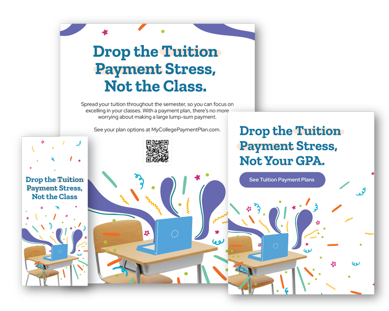 Many of the marketing materials feature a QR code that will take your students to mycollegepaymentplan.com to search for your institution to learn about all of the payment plan options available. This code helps give students the digital experience they’re looking for; timely information that can be easily accessed and shared with others.